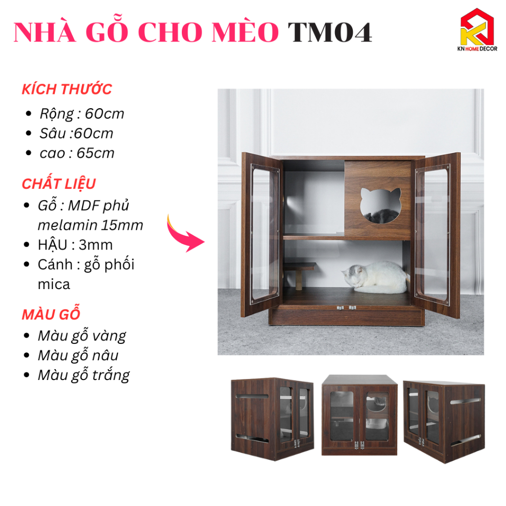 Tủ Nuôi Mèo Gỗ MDF Phủ Melamine – Chuồng Mèo Hiện Đại & Thông Thoáng R60*S60*C65 | TM04 KN Home Décor
