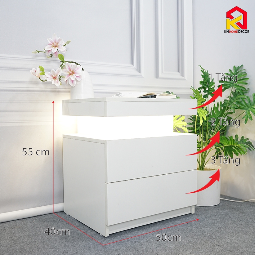 [ Lắp sẵn ] Tủ đầu giường 3 tầng đèn LED cảm ứng ,Ngăn bí mật Gỗ MDF KT: R50*S40*C55 | TAB50 KN Home Decor