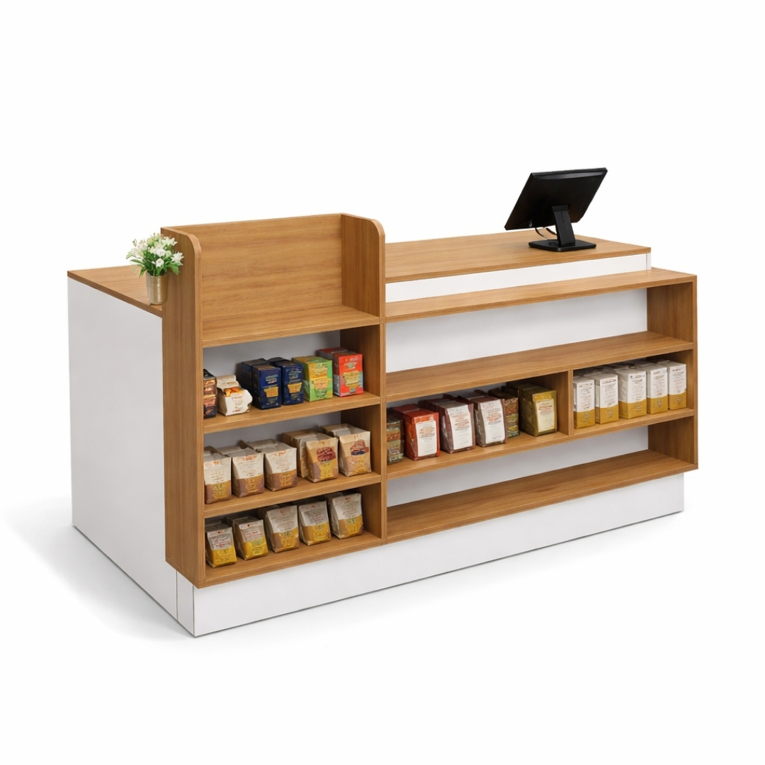 - Thiết kế 2 trong 1: quầy thu ngân + kệ trưng bày