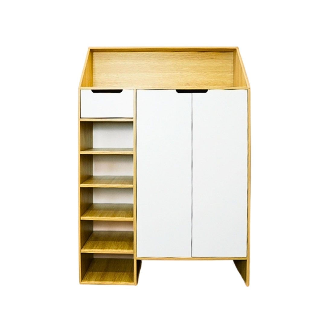 - Chất liệu: Gỗ MDF phủ Melamine, bền chắc, chống trầy xước, dễ vệ sinh.