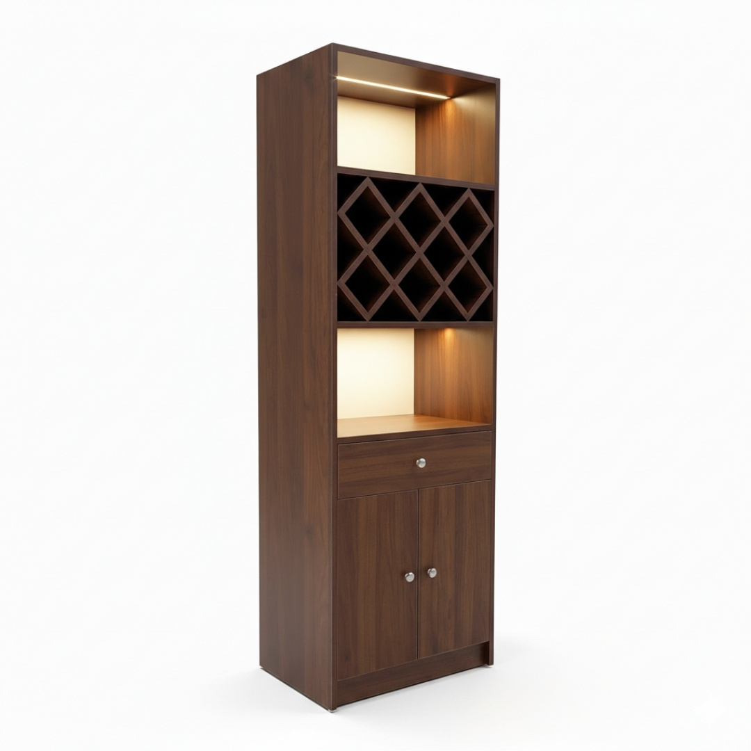 Tủ rượu MDF Melamine đèn led khay âm cảm biến kết hợp kệ trang trí 600x400x1800 KN-TR-01