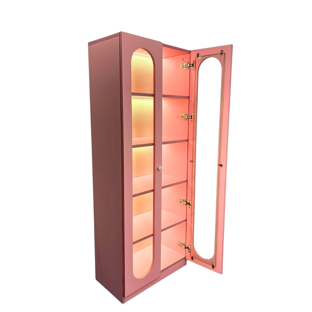 Sản phẩm sử dụng gỗ MDF phủ Melamine cao cấp, kết hợp cánh kính cường lực trong suốt, tạo cảm giác sang trọng và hiện đại. Hệ đèn LED cảm biến tự động bật khi mở cửa, giúp làm nổi bật vật trưng bày và nâng tầm không gian nội thất.